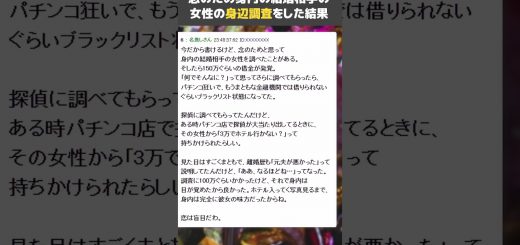 0 【パチンカス】身内の結婚相手の女性を調査したら借金150万&パチンコ依存が発覚 さらにパチンコ屋で勝ってる男性に声を掛け…【身元調査/結婚/2ch面白いスレ】 #shorts 2025年12月7日 by videoupper · Published 2025年12月7日