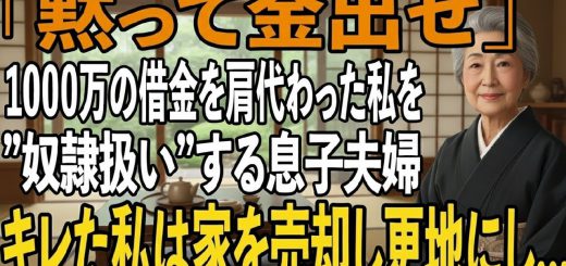 0 1000万の借金の肩代わりをした姑の私をフル無視し奴隷扱いする息子夫婦。激怒した私は即座に家を売却し更地にした→後日、2人は半狂乱に【シニアライフ】【60代以上の方へ】 2025年10月3日 by videoupper · Published 2025年10月3日
